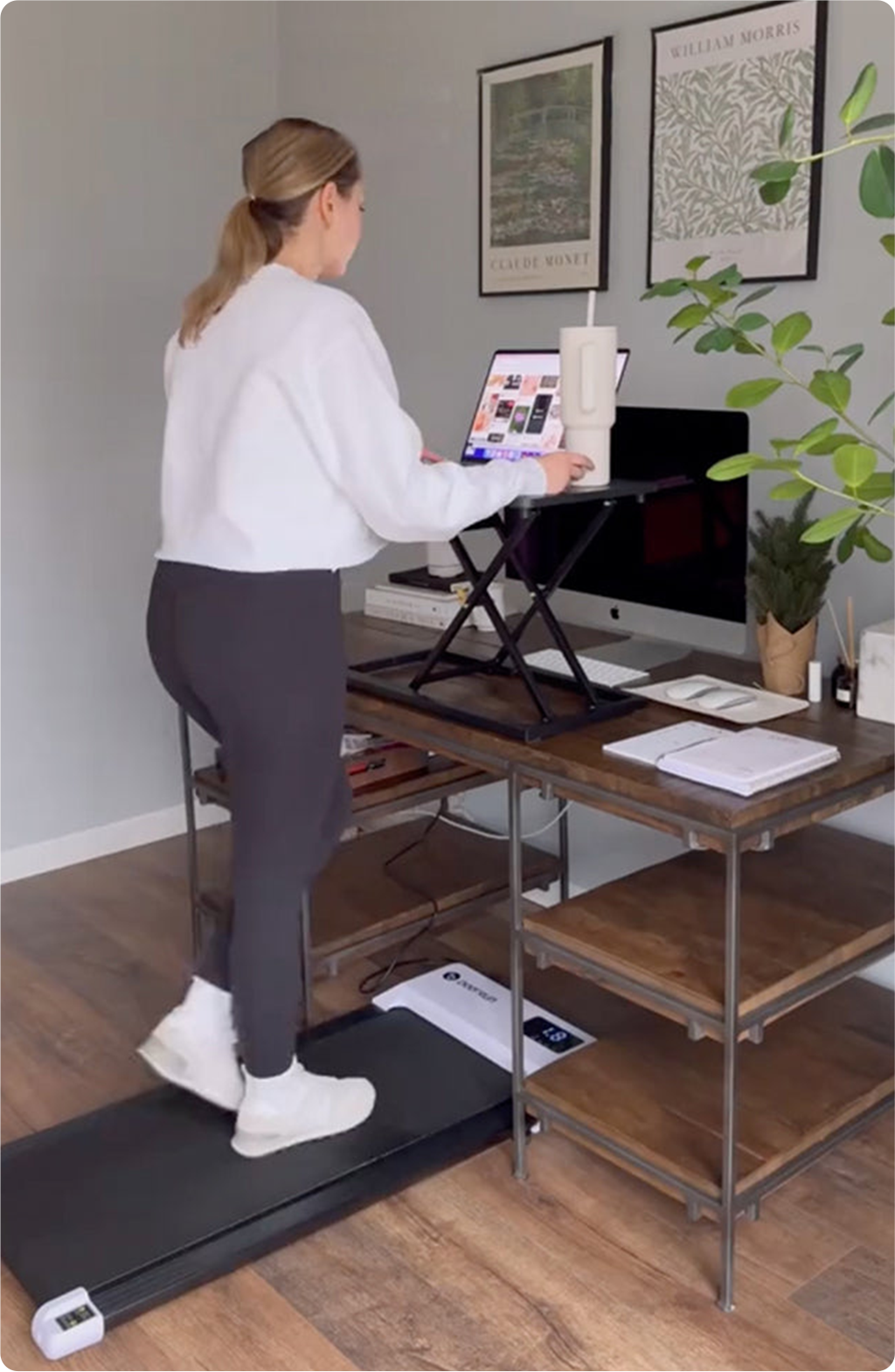 It does the job! It's compact, easy to use and easy to move. It's really going to help my health while I'm stuck at the desk. Things I'd change: Turn off the beeps. The app has a messy interface that has way too much social media and gaming. I just want to know how long I walked for, nothing else. But, despite good Bluetooth and WiFi connectivity, data doesn't appear to sync every time.