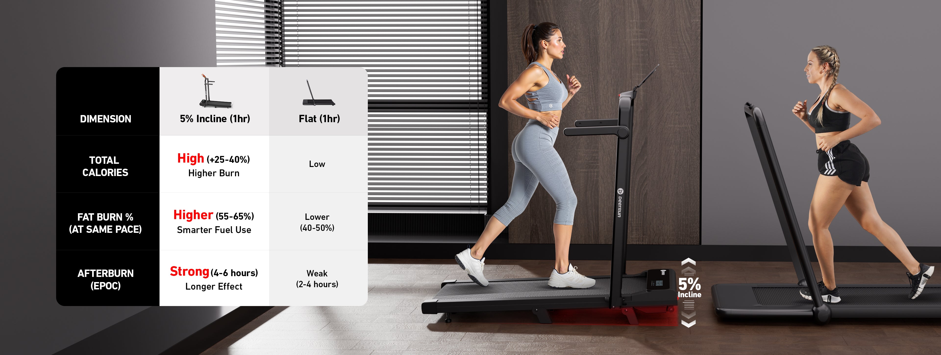 Simulates uphill walking or running to engage more muscles and increase calorie burn — suitable for both beginners and experienced runners.