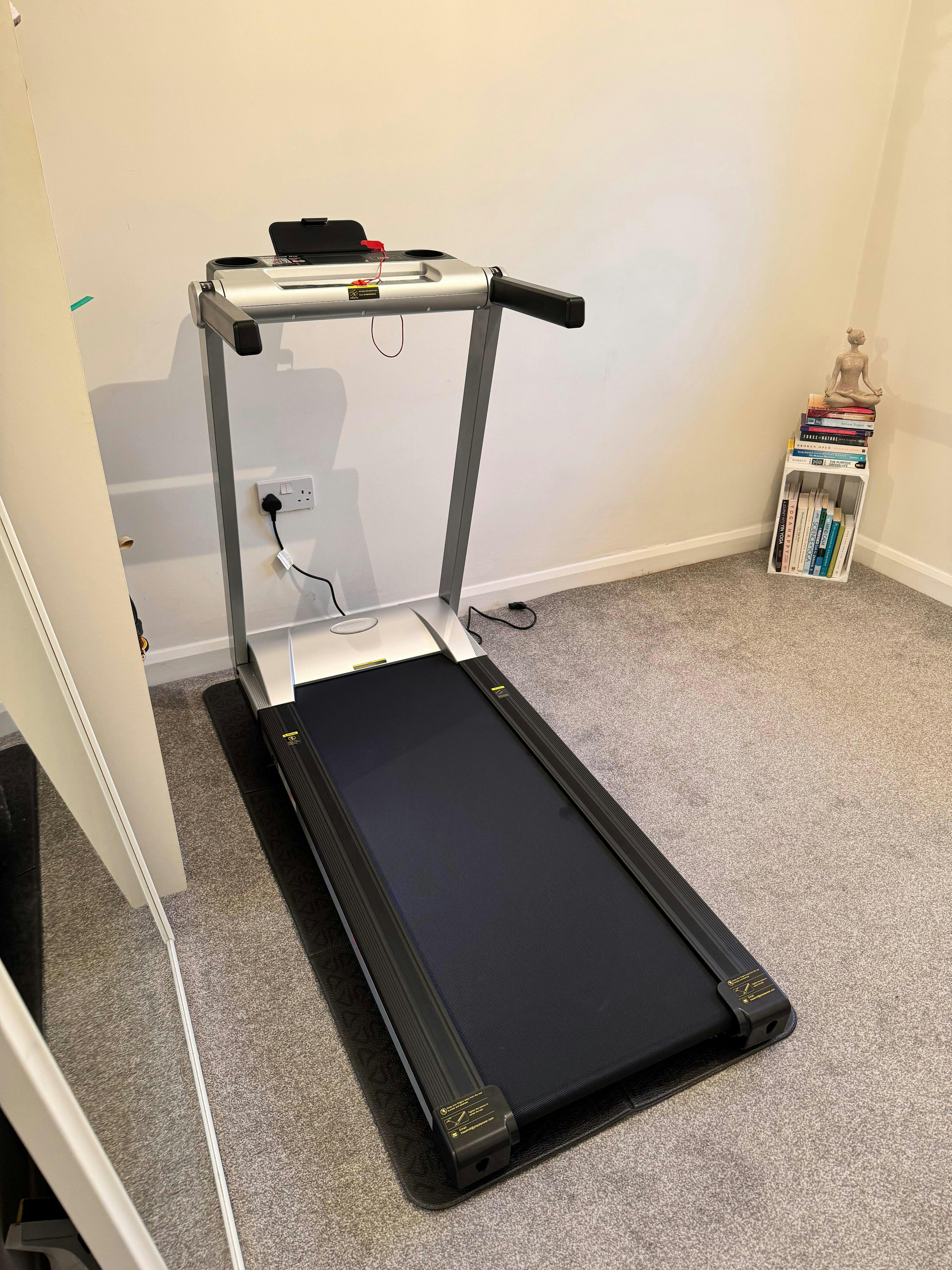 I did some research on what would be a good solid treadmill that is not too massive, with arms and picked this one. We bought this treadmill as a way of keeping up our steps in all weathers. As a senior couple we wanted one with arms and for it to feel solid and stable. This A1 treadmill is certainly solid, it is heavy and although it is sold as folding, I wouldn’t want to be folding this away on a daily basis, as it involves tightening/loosening screws on the side, but it is possible to do. The tread area is adequate and it runs smoothly. It is not noisy. The display is good and the Pitpat App is available to download to your phone and use with the treadmill. It is a great treadmill and I’d recommend it.
